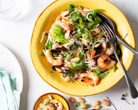 Gulas y gambas con vinagreta de miel y mostaza