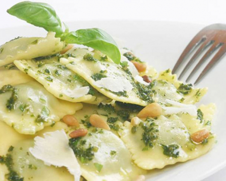 Raviolis de calabacín al pesto